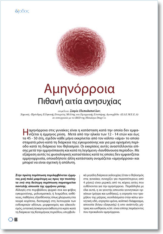 Ç áìçíüññïéá óôéò ãõíáßêåò åßíáé ç êáôÜóôáóç êáôÜ ôçí ïðïßá äåí åìöáíßæåôáé ç Ýììçíïò ñýóç. ÌåôÜ áðü ôçí çëéêßá ôùí 12 - 14 åôþí êáé Ýùò ôá 45 - 50 Ýôç, ó÷åäüí êÜèå ìÞíá åêêñßíåôáé áðü ôïí êüëðï «áßìá» ôï ïðïßï óôáìáôÜ ìüíï êáôÜ ôç äéÜñêåéá ôçò åãêõìïóýíçò êáé ãéá ìéá ïñéóìÝíç ðåñßïäï êáôÜ ôç äéÜñêåéá ôïõ èçëáóìïý. Ïé åêêñßóåéò áõôÝò áíáóôÝëëïíôáé åðßóçò ìåôÜ ôçí åììçíüðáõóç êáé êáôÜ ôç ëåãüìåíç «ëáíèÜíïõóá ðåñßïäï». Ìå åîáßñåóç áõôÝò ôéò öõóéïëïãéêÝò êáôáóôÜóåéò êáôÜ ôéò ïðïßåò äåí åìöáíßæåôáé åììçíïññõóßá, ïðïéáäÞðïôå Üëëç êáôÜóôáóç ïíïìÜæåôáé «áìçíüññïéá» êáé ìðïñåß íá åßíáé ó÷åôéêÞ Þ áðüëõôç.