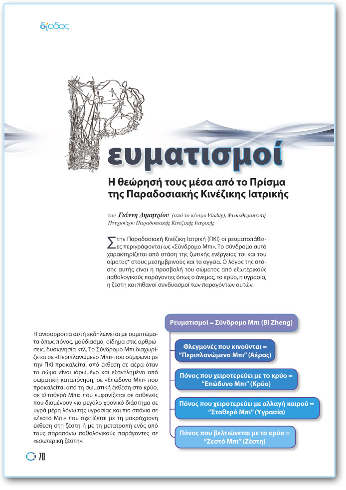 Óôçí ÐáñáäïóéáêÞ ÊéíÝæéêç ÉáôñéêÞ (ÐÊÉ) ïé ñåõìáôïðÜèåéåò ðåñéãñÜöïíôáé ùò «Óýíäñïìï Ìðé». Ôï óýíäñïìï áõôü ÷áñáêôçñßæåôáé áðü óôÜóç ôçò æùôéêÞò åíÝñãåéáò ôóé êáé ôïõ áßìáôïò* óôïõò ìåóçìâñéíïýò êáé ôá áããåßá. Ï ëüãïò ôçò óôÜóçò áõôÞò åßíáé ç ðñïóâïëÞ ôïõ óþìáôïò áðü åîùôåñéêïýò ðáèïëïãéêïýò ðáñÜãïíôåò üðùò ï Üíåìïò, ôï êñýï, ç õãñáóßá, ç æÝóôç êáé ðéèáíïß óõíäõáóìïß ôùí ðáñáãüíôùí áõôþí.