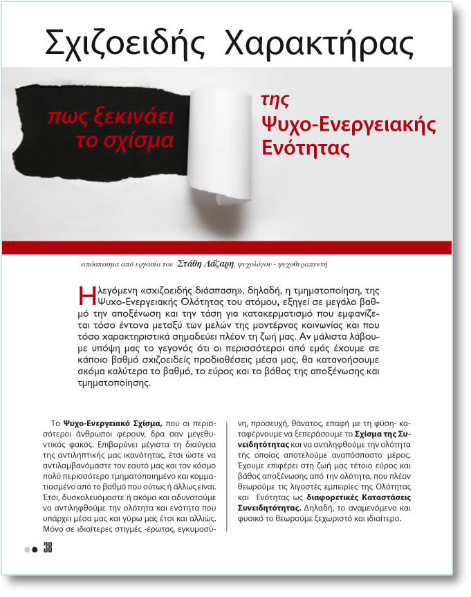 Ó÷éæïåéäÞò ÷áñáêôÞñáò Ðþò îåêéíÜåé ôï Ó÷ßóìá ôçò Øõ÷ï-ÅíåñãåéáêÞò Åíüôçôáò; Áðüóðáóìá áðü åñãáóßá ôïõ ÓôÜèç ËÜæáñç, øõ÷ïëüãïõ - øõ÷ïèåñáðåõôÞ Ç ëåãüìåíç «ó÷éæïåéäÞò äéÜóðáóç», äçëáäÞ, ç ôìçìáôïðïßçóç, ôçò Øõ÷ï-ÅíåñãåéáêÞò Ïëüôçôáò ôïõ áôüìïõ, åîçãåß óå ìåãÜëï âáèìü ôçí áðïîÝíùóç êáé ôçí ôÜóç ãéá êáôáêåñìáôéóìü ðïõ åìöáíßæåôáé ôüóï Ýíôïíá ìåôáîý ôùí ìåëþí ôçò ìïíôÝñíáò êïéíùíßáò êáé ðïõ ôüóï ÷áñáêôçñéóôéêÜ óçìáäåýåé ðëÝïí ôç æùÞ ìáò. Áí ìÜëéóôá ëÜâïõìå õðüøç ìáò ôï ãåãïíüò üôé ïé ðåñéóóüôåñïé áðü åìÜò Ý÷ïõìå óå êÜðïéï âáèìü ó÷éæïåéäåßò ðñïäéáèÝóåéò ìÝóá ìáò, èá êáôáíïÞóïõìå áêüìá êáëýôåñá ôï âáèìü, ôï åýñïò êáé ôï âÜèïò ôçò áðïîÝíùóçò êáé ôìçìáôïðïßçóçò. Ôï Øõ÷ï-Åíåñãåéáêü Ó÷ßóìá, ðïõ ïé ðåñéóóüôåñïé Üíèñùðïé öÝñïõí, äñá óáí ìåãåèõíôéêüò öáêüò. Åðéâáñýíåé ìÝãéóôá ôç äéáýãåéá ôçò áíôéëçðôéêÞò ìáò éêáíüôçôáò, Ýôóé þóôå íá áíôéëáìâáíüìáóôå ôïí åáõôü ìáò êáé ôïí êüóìï ðïëý ðåñéóóüôåñï ôìçìáôïðïéçìÝíï êáé êïììáôéáóìÝíï áðü ôï âáèìü ðïõ ïýôùò Þ Üëëùò åßíáé. ¸ôóé, äõóêïëåõüìáóôå Þ áêüìá êáé áäõíáôïýìå íá áíôéëçöèïýìå ôçí ïëüôçôá êáé åíüôçôá ðïõ õðÜñ÷åé ìÝóá ìáò êáé ãýñù ìáò Ýôóé êáé áëëéþò. Ìüíï óå éäéáßôåñåò óôéãìÝò -Ýñùôáò, åãêõìïóýíç, ðñïóåõ÷Þ, èÜíáôïò, åðáöÞ ìå ôç öýóç- êáôáöÝñíïõìå íá îåðåñÜóïõìå ôï Ó÷ßóìá ôçò Óõíåéäçôüôçôáò êáé íá áíôéëçöèïýìå ôçí ïëüôçôá ôÞò ïðïßáò áðïôåëïýìå áíáðüóðáóôï ìÝñïò. ¸÷ïõìå åðéöÝñåé óôç æùÞ ìáò ôÝôïéï åýñïò êáé âÜèïò áðïîÝíùóçò áðü ôçí ïëüôçôá, ðïõ ðëÝïí èåùñïýìå ôéò ëéãïóôÝò åìðåéñßåò ôçò Ïëüôçôáò êáé Åíüôçôáò ùò äéáöïñåôéêÝò ÊáôáóôÜóåéò Óõíåéäçôüôçôáò. ÄçëáäÞ, ôï áíáìåíüìåíï êáé öõóéêü ôï èåùñïýìå îå÷ùñéóôü êáé éäéáßôåñï. |