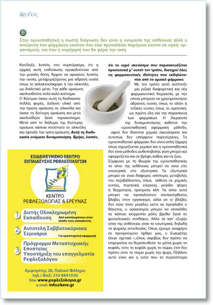 Ìå ôïí ôñüðï áõôü áíÝðôõîå ìéá ñéæéêÜ äéáöïñåôéêÞ êáé íÝá öáñìáêåõôéêÞ äéåñãáóßá, ìå ôçí ïðïßá ìðüñåóå íá ÷ñçóéìïðïéÞóåé áäñáíåßò ïõóßåò üðùò ôï áëÜôé Þ ôïîéêÝò ïõóßåò üðùò ôï áñóåíéêü, ùò ðñþôç ýëç ãéá ôçí ðáñáóêåõÞ ôùí öáñìÜêùí. Ç äéåñãáóßá ôçò äõíáìïðïßçóçò êáèéóôÜ ôçí ïìïéïðáèçôéêÞ áöÜñìáêç ìÝèïäï, áöïý äåí äßíïíôáé ÷çìéêÜ óêåõÜóìáôá êáé óõíåðþò äåí õðÜñ÷ïõí ðáñåíÝñãåéåò. Ôï ïìïéïðáèçôéêü öÜñìáêï äåí åßíáé áðëÞ æÜ÷áñç üðùò éó÷õñßæïíôáé ìåñéêïß êáé ç ïìïéïðáèçôéêÞ äåí åßíáé ìÝèïäïò áõèõðïâïëÞò ãéáôß ìðïñåß êáé åöáñìüæåôáé êáé óå âñÝöç êáèþò êáé óå æþá. Óýìöùíá ìå ôç èåùñßá ôçò ïìïéïðáèçôéêÞò ôá áßôéá ôçò áóèÝíåéáò ìðïñåß íá åßíáé åßôå åóùôåñéêÜ, åßôå åîùôåñéêÜ. Ôá åîùôåñéêÜ ìðïñåß íá åßíáé äéÜöïñåò áðüôïìåò ìåôáâïëÝò ôïõ ðåñéâÜëëïíôïò, üðùò Ýêèåóç óå ÷çìéêÝò ïõóßåò, ðõñçíéêÞ åíÝñãåéá, ìåãÜëï øý÷ïò Þ èåñìüôçôá, ôñáýìáôá êëð. Ôá áßôéá áõôÜ ìðïñåß íá ðñïêáëÝóïõí áíåðáíüñèùôåò âëÜâåò óôïí ïñãáíéóìü, áëëÜ áí ïé âëÜâåò äåí åßíáé ôüóï ìåãÜëåò þóôå íá ðñïêëçèåß ï èÜíáôïò, ï ïñãáíéóìüò ìðïñåß íá åðáíÝëèåé óå êÜðïéá éóïññïðßá ìüëéò âñåèåß îáíÜ óå öõóéïëïãéêÝò óõíèÞêåò. ÁëëÜ ôá êáô’ åîï÷Þí áßôéá ôçò áóèÝíåéáò åßíáé ôá åóùôåñéêÜ, äçëáäÞ ôá øõ÷éêÞò áéôéïëïãßáò. ¼ðùò Ý÷ïõìå áíáöÝñåé óå ðñïçãïýìåíï Üñèñï ìáò, ï ÓùêñÜôçò Ýëåãå ó÷åôéêÜ «..üðùò áêñéâþò äåí ðñÝðåé íá åðé÷åéñåßôáé íá èåñáðåõèïýí ôá ìÜôéá ÷ùñßò ôï êåöÜëé, ïýôå ôï êåöÜëé ÷ùñßò ôï óþìá, Ýôóé äåí ðñÝðåé ïýôå ôï óþìá ÷ùñßò ôçí øõ÷Þ. ÅîÜëëïõ áõôü åßíáé êáé ç áéôßá ðïõ ôá ðåñéóóüôåñá íïóÞìáôá äåí ãßíïíôáé áíôéëçðôÜ áðü ôïõò ãéáôñïýò ðïõ âñßóêïíôáé äßðëá óôïõò ¸ëëçíåò, äéüôé ðáñáìåëïýí ôï óýíïëï ãéá ôï ïðïßï ðñÝðåé íá öñïíôßæïõí, ôï ïðïßï áí äåí åßíáé êáëÜ åßíáé áäýíáôïí íá åßíáé êáëÜ ôï ìÝñïò.