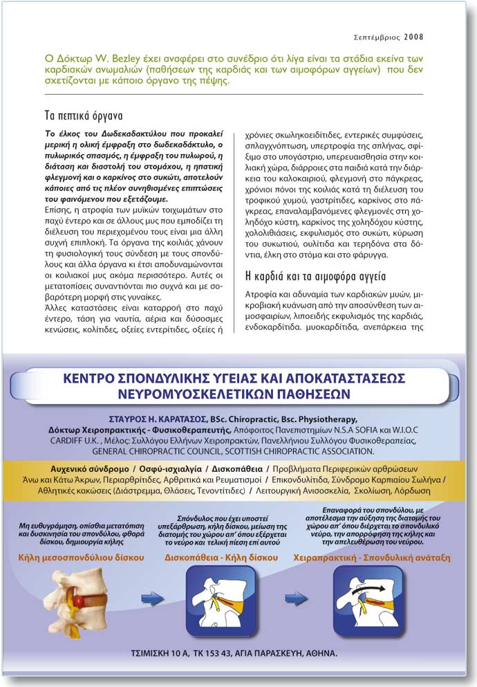 Ôá ðåðôéêÜ üñãáíá Ôï Ýëêïò ôïõ Äùäåêáäáêôýëïõ ðïõ ðñïêáëåß ìåñéêÞ ç ïëéêÞ Ýìöñáîç óôï äùäåêáäÜêôõëï, ï ðõëùñéêüò óðáóìüò, ç Ýìöñáîç ôïõ ðõëùñïý, ç äéÜôáóç êáé äéáóôïëÞ ôïõ óôïìÜ÷ïõ, ç çðáôéêÞ öëåãìïíÞ êáé ï êáñêßíïò óôï óõêþôé, áðïôåëïýí êÜðïéåò áðü ôéò ðëÝïí óõíçèéóìÝíåò åðéðôþóåéò ôïõ öáéíüìåíïõ ðïõ åîåôÜæïõìå. Åðßóçò, ç áôñïößá ôùí ìõúêþí ôïé÷ùìÜôùí óôï ðá÷ý Ýíôåñï êáé óå Üëëïõò ìõò ðïõ åìðïäßæåé ôç äéÝëåõóç ôïõ ðåñéå÷ïìÝíïõ ôïõò åßíáé ìéá Üëëç óõ÷íÞ åðéðëïêÞ. Ôá üñãáíá ôçò êïéëéÜò ÷Üíïõí ôç öõóéïëïãéêÞ ôïõò óýíäåóç ìå ôïõò óðïíäýëïõò êáé Üëëá üñãáíá êé Ýôóé áðïäõíáìþíïíôáé ïé êïéëéáêïß ìõò áêüìá ðåñéóóüôåñï. ÁõôÝò ïé ìåôáôïðßóåéò óõíáíôéüíôáé ðéï óõ÷íÜ êáé ìå óïâáñüôåñç ìïñöÞ óôéò ãõíáßêåò. ¶ëëåò êáôáóôÜóåéò åßíáé êáôáññïÞ óôï ðá÷ý Ýíôåñï, ôÜóç ãéá íáõôßá, áÝñéá êáé äýóïóìåò êåíþóåéò, êïëßôéäåò, ïîåßåò åíôåñßôéäåò, ïîåßåò Þ ÷ñüíéåò óêùëçêïåéäßôéäåò, åíôåñéêÝò óõìöýóåéò, óðëáã÷íüðôùóç, õðåñôñïößá ôçò óðëÞíáò, óößîéìï óôï õðïãÜóôñéï, õðåñåõáéóèçóßá óôçí êïéëéáêÞ ÷þñá, äéÜññïéåò óôá ðáéäéÜ êáôÜ ôçí äéÜñêåéá ôïõ êáëïêáéñéïý, öëåãìïíÞ óôï ðÜãêñåáò, ÷ñüíéïé ðüíïé ôçò êïéëéÜò êáôÜ ôç äéÝëåõóç ôïõ ôñïöéêïý ÷õìïý, ãáóôñßôéäåò, êáñêßíïò óôï ðÜãêñåáò, åðáíáëáìâáíüìåíåò öëåãìïíÝò óôç ÷ïëçäü÷ï êýóôç, êáñêßíïò ôçò ÷ïëçäü÷ïõ êýóôçò, ÷ïëïëéèéÜóåéò, åêöõëéóìüò óôï óõêþôé, êýñùóç ôïõ óõêùôéïý, ïõëßôéäá êáé ôåñçäüíá óôá äüíôéá, Ýëêç óôï óôüìá êáé óôï öÜñõããá.