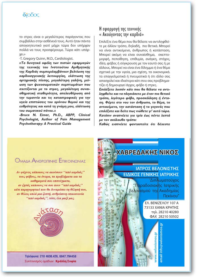 «Ôá äõíçôéêÜ ïöÝëç ôùí ðéóôþí åöáñìïãþí ôçò ôå÷íéêÞò ôïõ Éíóôéôïýôïõ ÁñéèìçôéêÞò ôçò ÊáñäéÜò óõìðåñéëáìâÜíïõí âåëôßùóç ôçò êáñäéïáããåéáêÞò ëåéôïõñãßáò, åëÜôôùóç ôçò áñôçñéáêÞò ðßåóçò, ìåãáëýôåñç ãáëÞíç, ìåßùóç ôùí øõ÷ïóùìáôéêþí óõìðôùìÜôùí ðïõ ó÷åôßæïíôáé ìå ôï óôñåò, ìåãáëýôåñç óõíáéóèçìáôéêÞ óôáèåñüôçôá, áðåëåõèÝñùóç áðü ôçí ôõñáííßá êáé ôéò êáôáóôñïöéêÝò ãéá ôçí õãåßá åðéðôþóåéò ôïõ ÷ñüíéïõ èõìïý êáé ôçò å÷èñüôçôáò êáé êáôÜ ôç ãíþìç ìïõ, åëÜôôùóç ôïõ óùìáôéêïý ðüíïõ.»