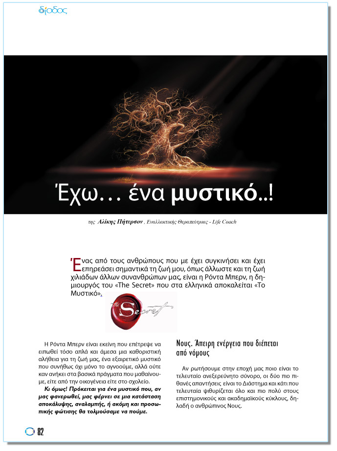 ¸íáò áðü ôïõò áíèñþðïõò ðïõ ìå Ý÷åé óõãêéíÞóåé êáé Ý÷åé åðçñåÜóåé óçìáíôéêÜ ôç æùÞ ìïõ, üðùò Üëëùóôå êáé ôç æùÞ ÷éëéÜäùí Üëëùí óõíáíèñþðùí ìáò, åßíáé ç Ñüíôá Ìðåñí, ç äçìéïõñãüò ôïõ «The Secret» ðïõ óôá åëëçíéêÜ áðïêáëåßôáé «Ôï Ìõóôéêü».